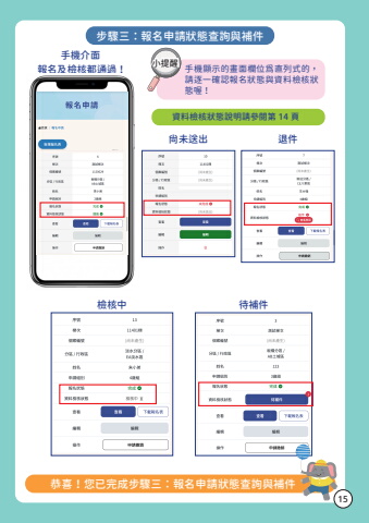 15%u6b65%u9a5f%u4e09%uff1a%u5831%u540d%u7533%u8acb%u72c0%u614b%u67e5%u8a62%u8207%u88dc%u4ef6%u624b%u6a5f%u4ecb%u9762%u5831%u540d%u53ca%u6aa2%u6838%u90fd%u901a%u904e%uff01%u5c1a%u672a%u9001%u51fa%u6aa2%u6838%u4e2d%u9000%u4ef6%u5f85%u88dc%u4ef6%u624b%u6a5f%u986f%u793a%u7684%u756b%u9762%u6b04%u4f4d%u70ba%u76f4%u5217%u5f0f%u7684%uff0c%u8acb%u9010%u4e00%u78ba%u8a8d%u5831%u540d%u72c0%u614b%u8207%u8cc7%u6599%u6aa2%u6838%u72c0%u614b%u5594%uff01%u5c0f%u63d0%u9192%u606d%u559c%uff01%u60a8%u5df2%u5b8c%u6210%u6b65%u9a5f%u4e09%uff1a%u5831%u540d%u7533%u8acb%u72c0%u614b%u67e5%u8a62%u8207%u88dc%u4ef6%u8cc7%u6599%u6aa2%u6838%u72c0%u614b%u8aaa%u660e%u8acb%u53c3%u95b1%u7b2c 14 %u9801